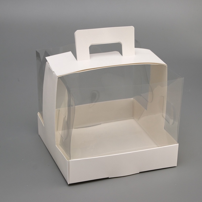 Коробка под торт 3 окна, с ручками, белая, 30 х 30 х 20 см