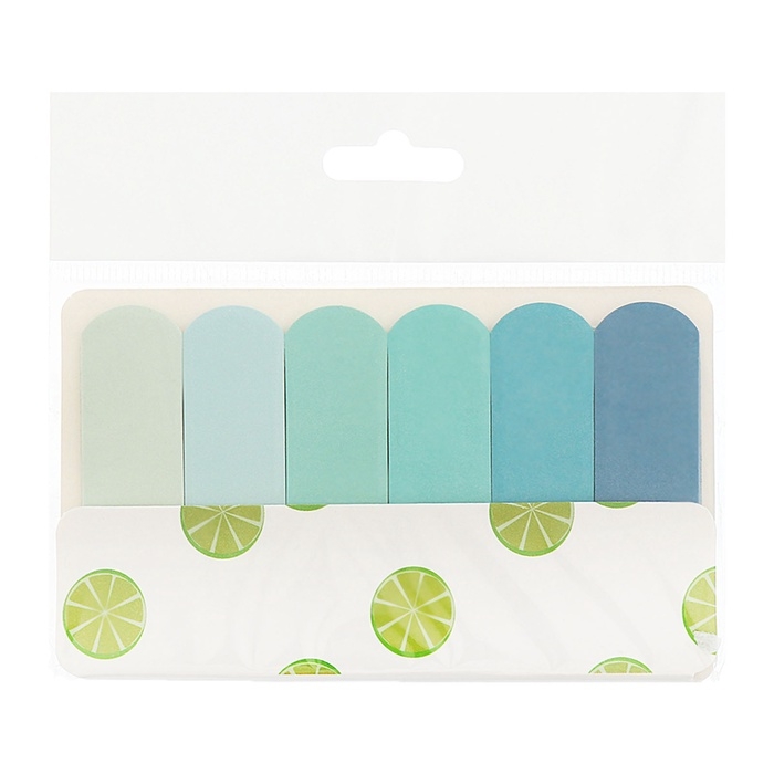 Блок-закладки с клеевым краем бумажные 20л х 6 цветов,18 х 65мм, пастель синий градиент