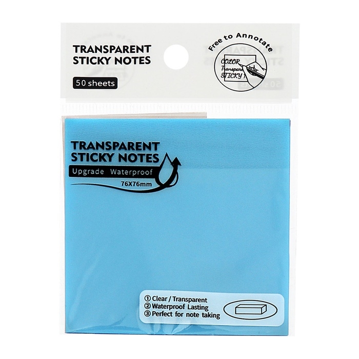 Блок с липким краем 76мм х 76мм 50л пластик прозрачный синий перламутр