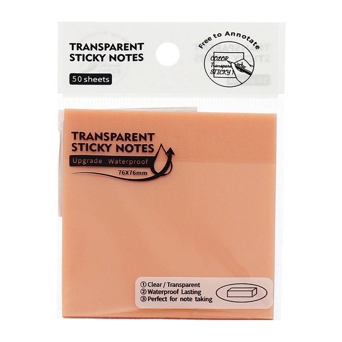 Блок с липким краем 76мм х 76мм 50л пластик прозрачный оранжевый перламутр