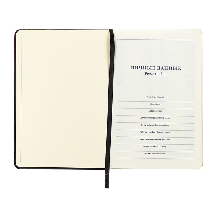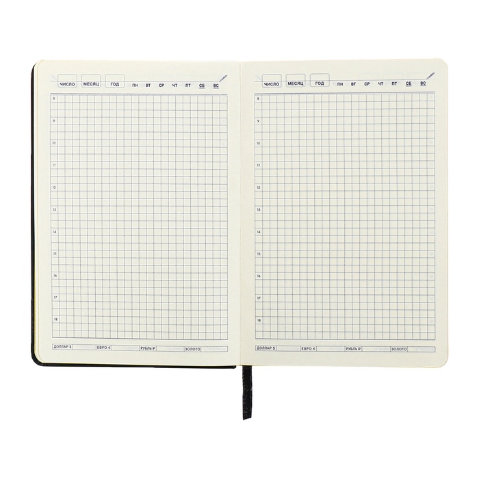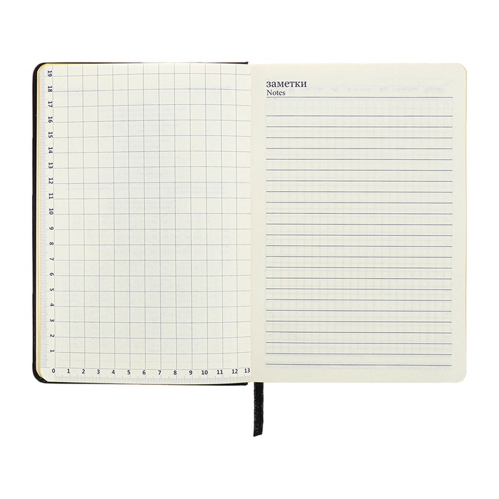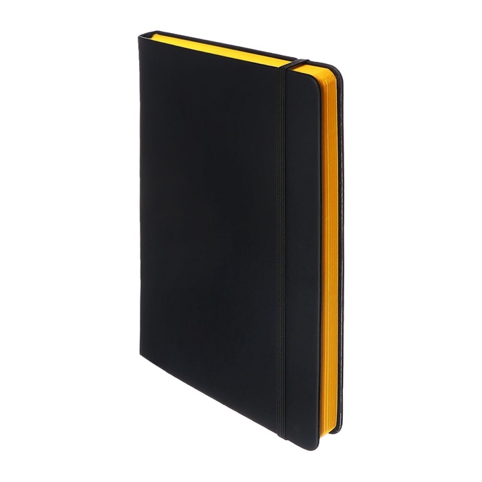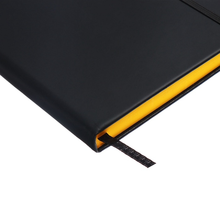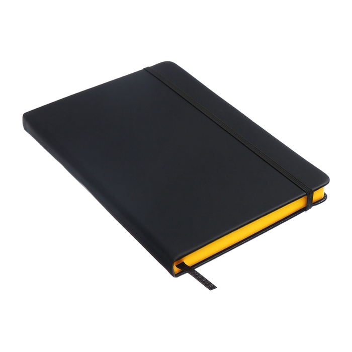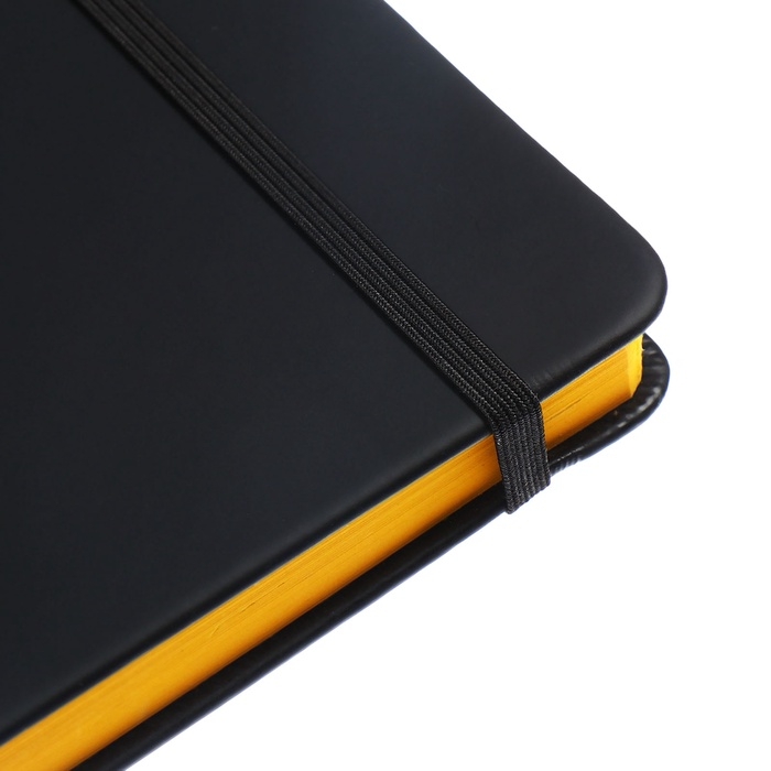 Ежедневник недатированный A5, 140л, клетка, кожзам, на резинке, желтый срез, Черный