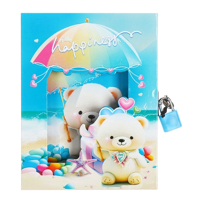 Записная книжка подарочная, 45 листов, линия, на замке Мишки (16,3х12,7см)