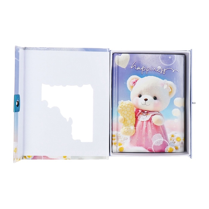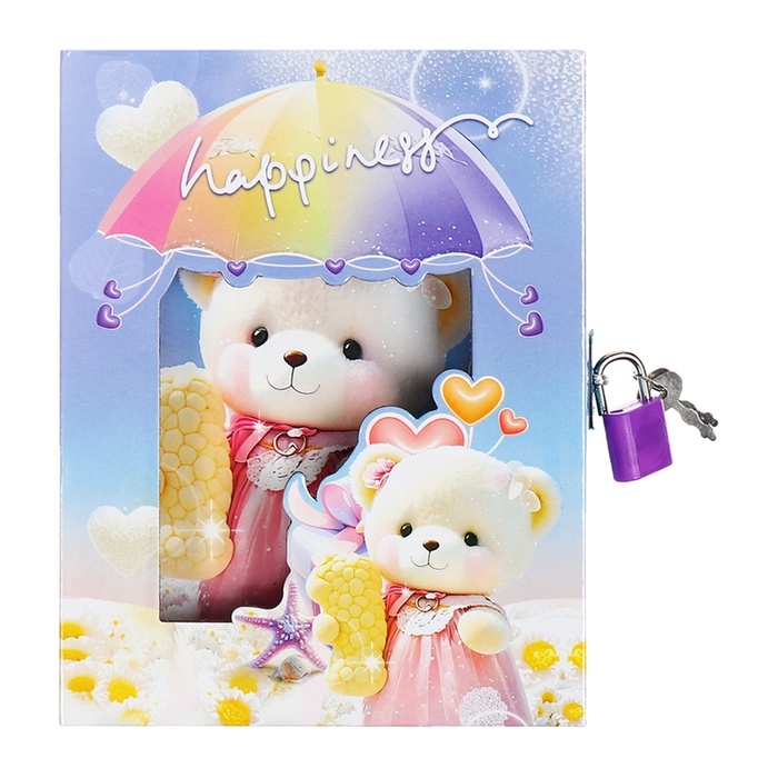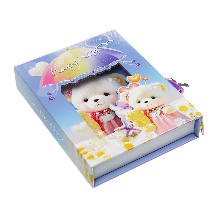 Записная книжка подарочная, 45 листов, линия, на замке Мишки (16,3х12,7см)