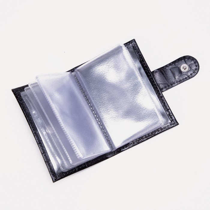 Визитница на кнопке, 18 карт, TEXTURA, цвет чёрный