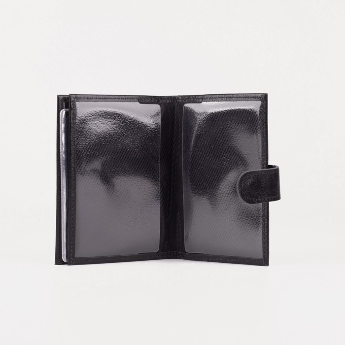 Обложка для автодокументов и паспорта, отдел для купюр, флотер, цвет чёрный