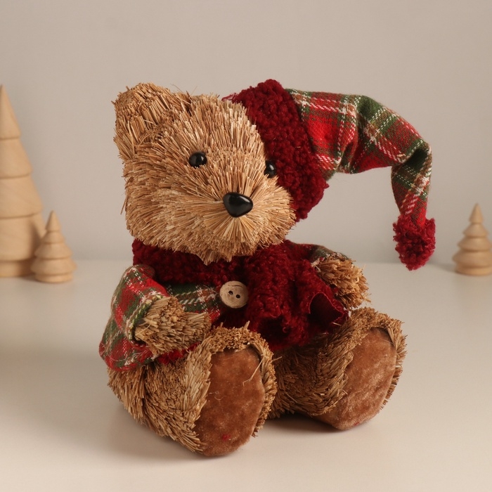 Декор "Мишка в клетчатом костюме и колпаке" 17х16х13 см