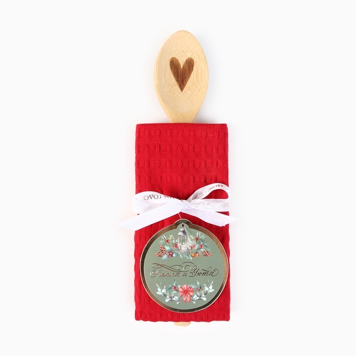 Новый год. Набор подарочный Доляна "Тепла и уюта": цвет бордовый, полотенце 35х60см, хл 100%, ваф 220г/м2