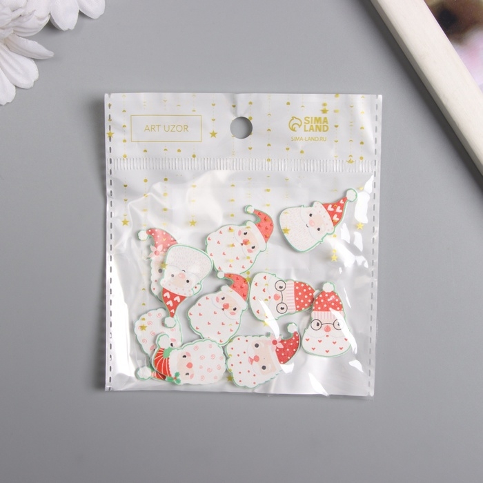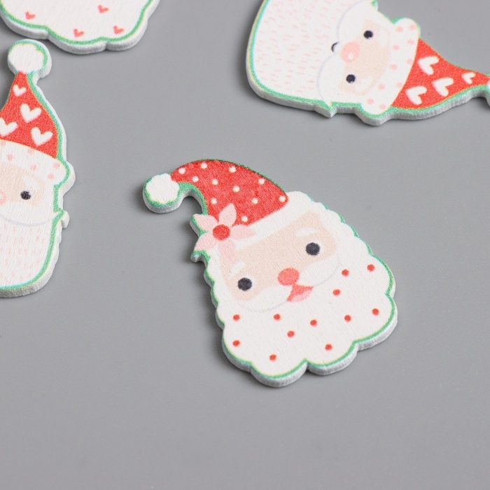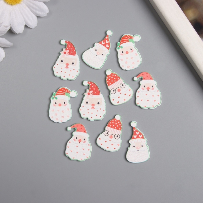 Декор для творчества дерево "Дедушки Морозы" набор 10 шт 2,8х1,9 см