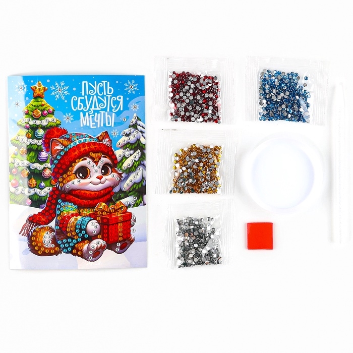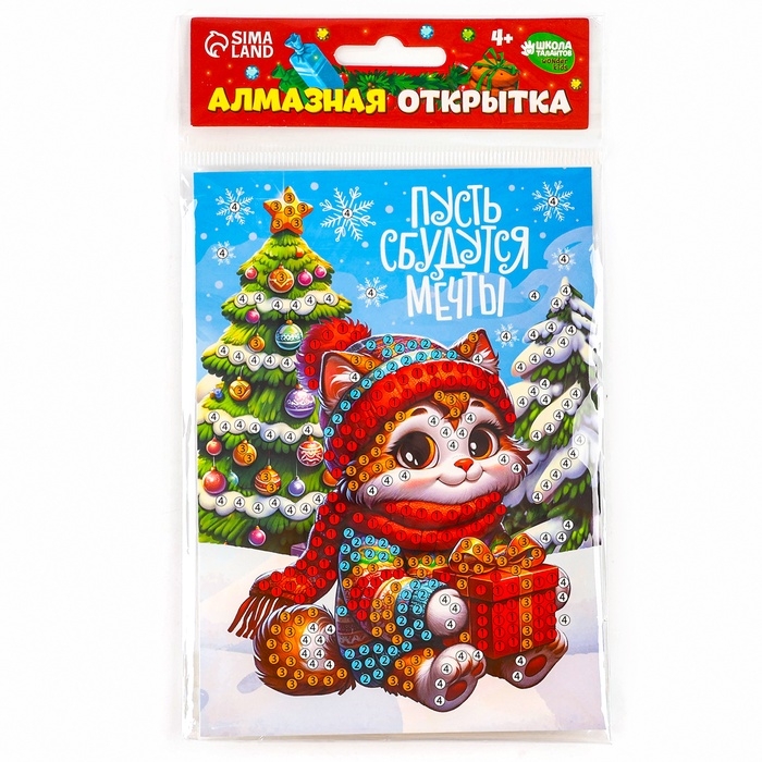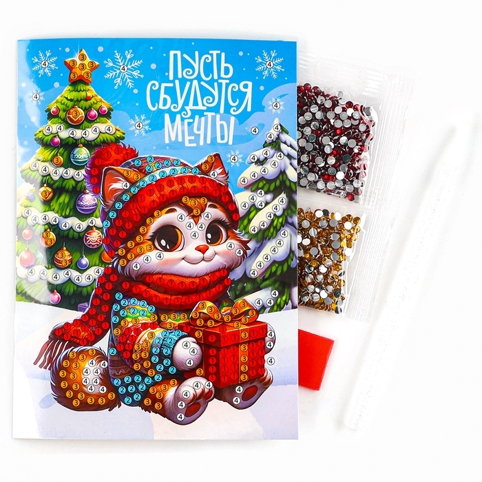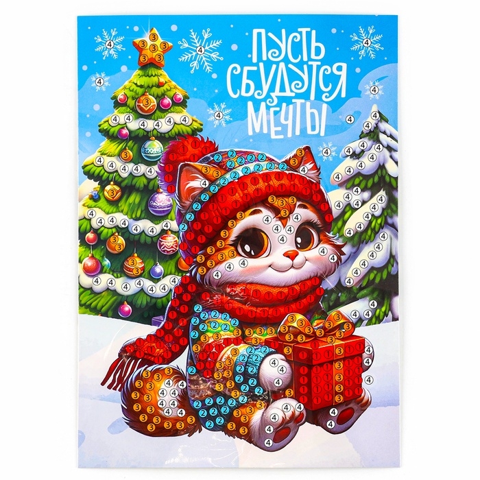 Алмазная мозаика на новый год с частичным заполнением для детей на открытке «Пусть сбудутся мечты», новогодний набор для творчества