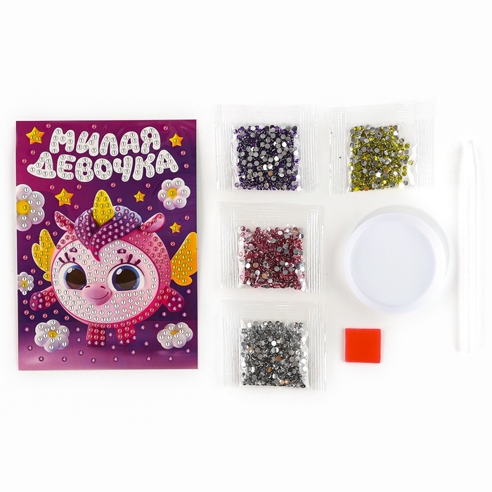 Алмазная мозаика для детей с частичным заполнением на открытке «Милая девочка»