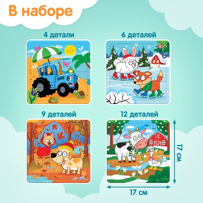 Пазлы 4 в 1 «Синий трактор: От зимы до лета», 31 деталь