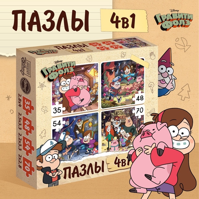 Пазлы 4 в 1 «Секреты Гравити Фолз», 207 деталей
