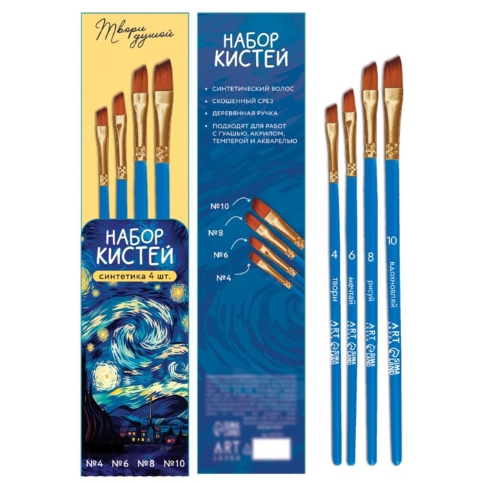 Кисть для рисования набор 4 шт. синтетика плоские № 4,6,8,10 «Ван Гог»