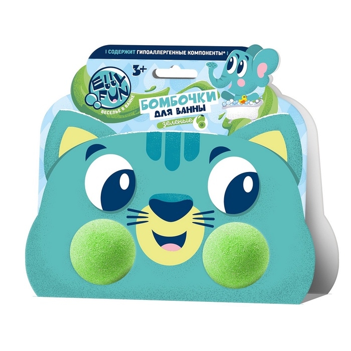 Бомбочки для ванны "ELLYFUN" "Зверюшки" "Котенок обечайка", цв. Зеленый EF014