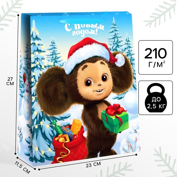 Новый год. Пакет подарочный, 23х27х11.5 см, упаковка, Чебурашка