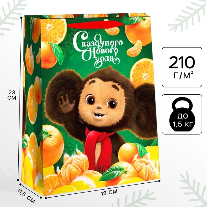 Новый год. Пакет подарочный, 18х23х11.5 см, упаковка, Чебурашка