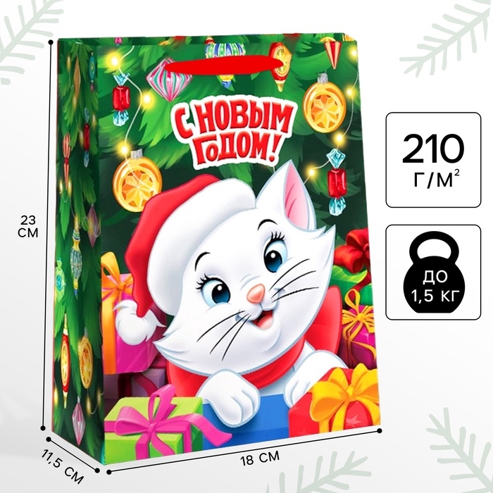 Новый год. Пакет подарочный, 18х23х11.5 см, упаковка, Коты Аристократы