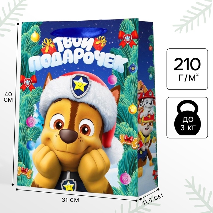 Новый год. Пакет подарочный, 31х40х11.5 см, упаковка, Щенячий патруль