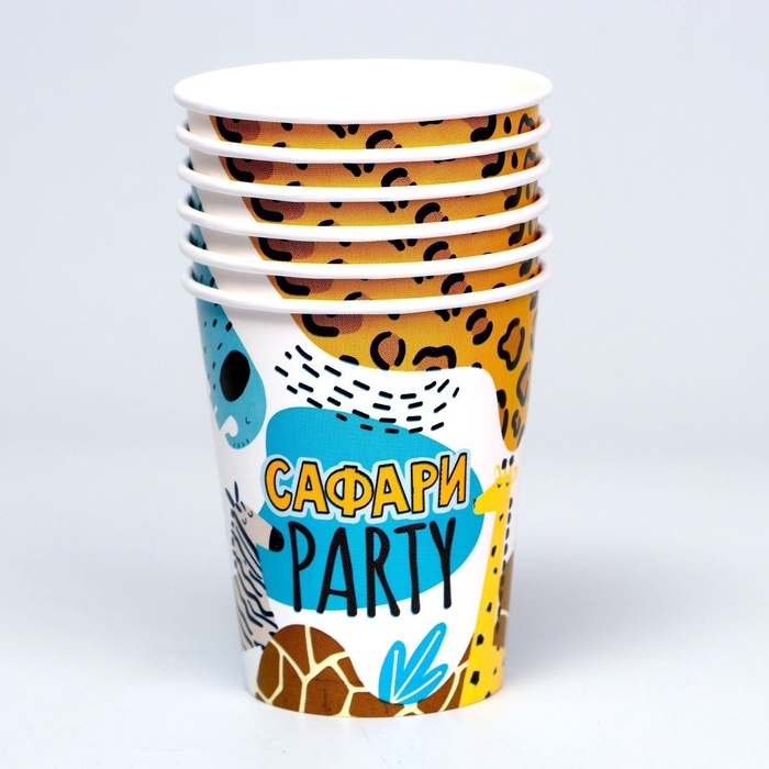 Набор бумажной посуды "Сафари", 6 тарелок,6 стаканов, скатерть
