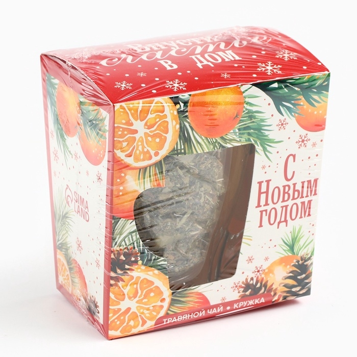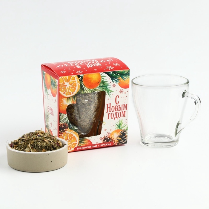 Подарочный набор новогодний «Впусти свастье в дом» чай травяной, 50 г и кружка стеклянная, 300 мл