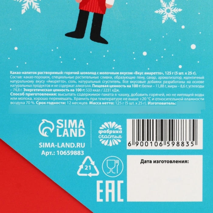 Горячий шоколад «Зима подарит волшебство», вкус: амаретто, 125 г (25 г х 5 шт)