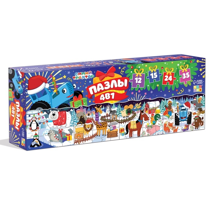 Пазлы 4 в 1 «Новогодняя ночь с Синим трактором», 12, 15, 24, 35 деталей
