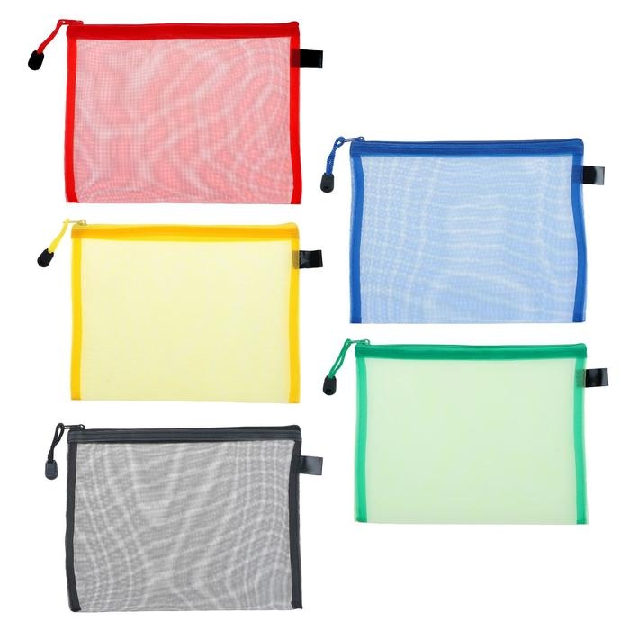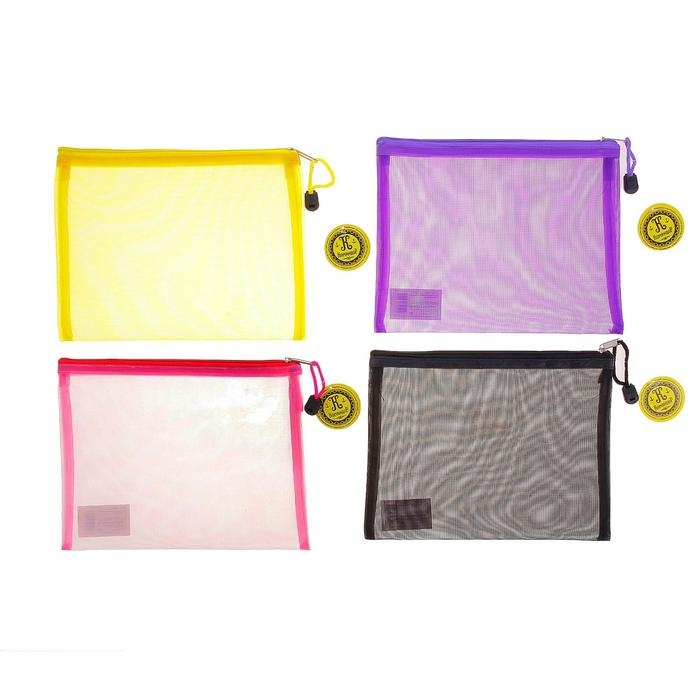 Папка-конверт на молнии Calligrata "Полоска - сеточка" А4, с сеткой внутри, МИКС