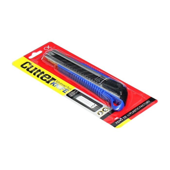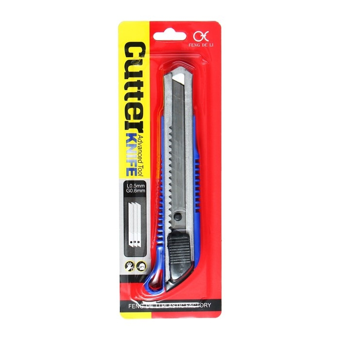 Нож канцелярский, 18 мм, металл с металлическим направляющим фиксатором, на блистере