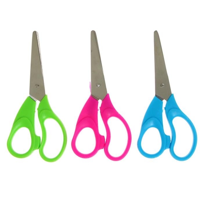 Ножницы канцелярские 13 см, травмобезопасные, пластиковые ручки, закруглённые концы, МИКС