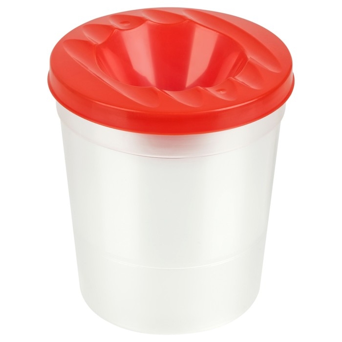 Конусообразная крышка с отверстием в центре препятствует попаданию воды на рабочую поверхность. На крышке расположены 5 продольных желобков для кисточек.