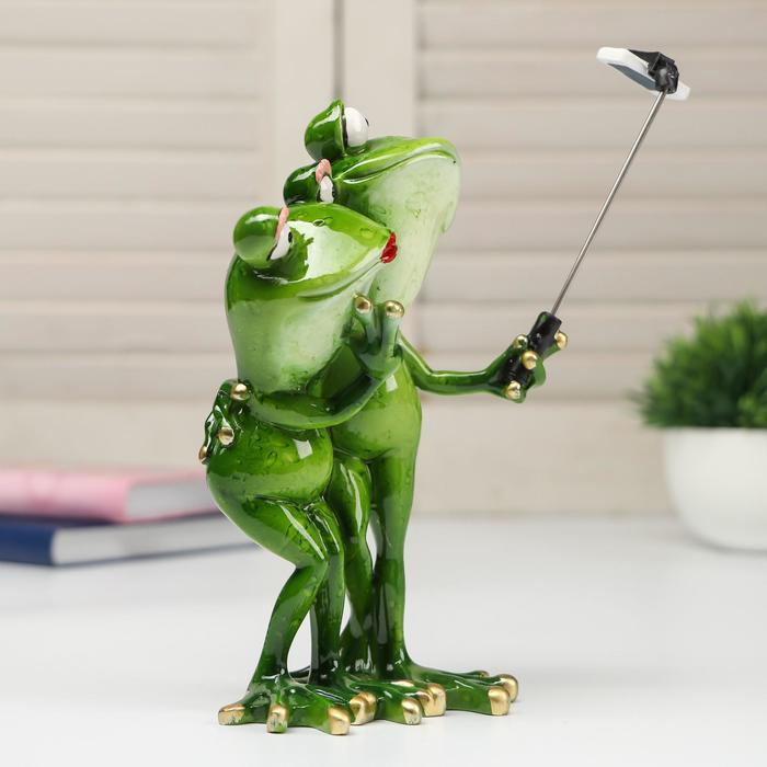 Сувенир полистоун лак "Парочка лягух селфится" 20,5х11х13,5 см