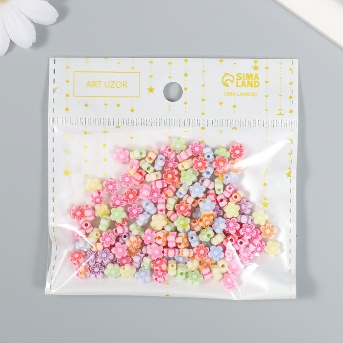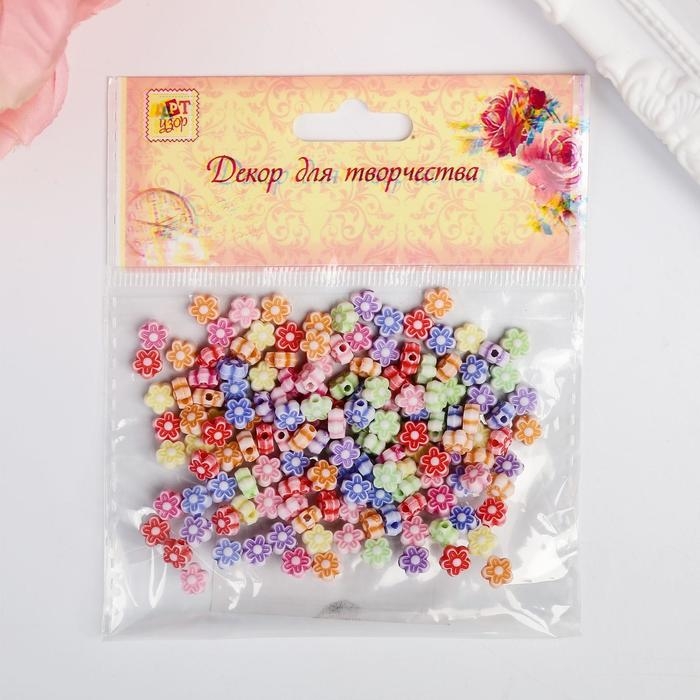 Бусины для творчествах пластик "Цветочки" (набор 150 шт) 0,6х0,6 см