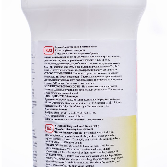 Чистящий порошок БАРХАТ САНИТАРНЫЙ-1 дезинфицирующий порошок лимон 500 гр