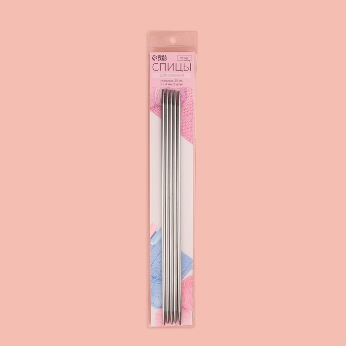 Спицы для вязания, чулочные, d = 4 мм, 25 см, 5 шт