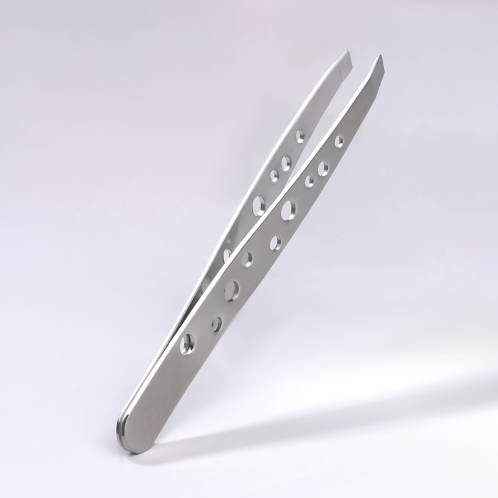 Пинцет скошенный, широкий, 9,5 см, цвет серебристый