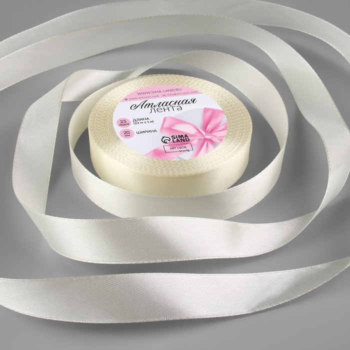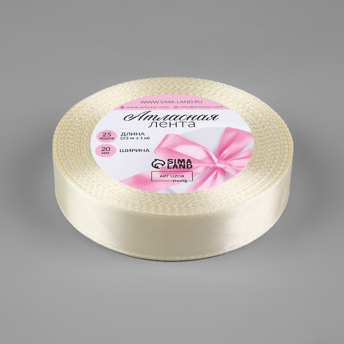 Лента атласная, 20 мм × 23 ± 1 м, цвет сливочный №02