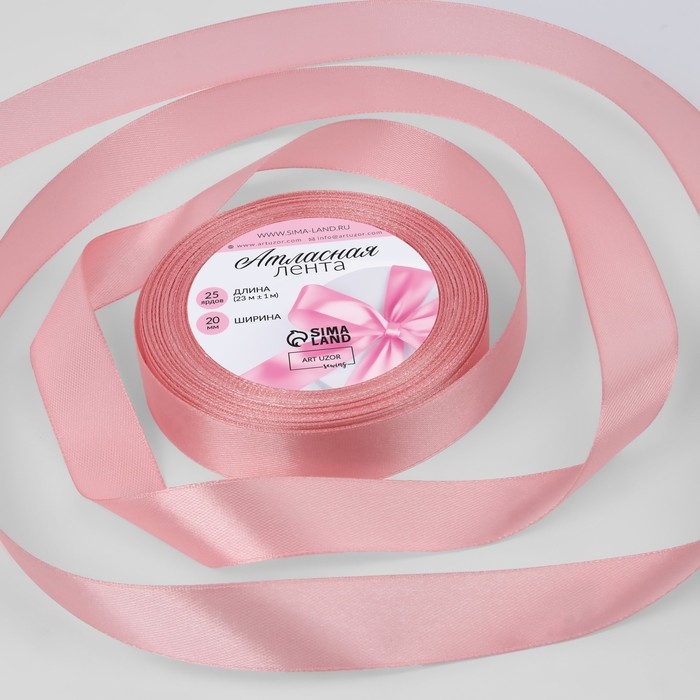 Лента атласная, 20 мм × 23 ± 1 м, цвет жемчужно-розовый №135