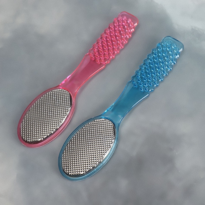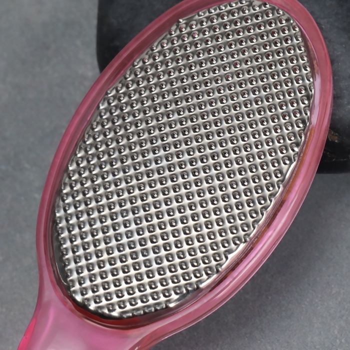 Кожа на ногах не такая нежная, как кожа рук, и требует особого внимания и ухода. Воспользуйтесь тёркой для ног. Двухсторонняя тёрка-наждак – это универсальный помощник в процессе ухода за ногами. Она бережно очистит огрубевшую кожу от мозолей и натоптышей, и ваши пяточки примут здоровый и ухоженный вид. С одной стороны находится тёрка, которая поможет удалить огрубевшую кожу, а с другой – наждак, который придаст пяткам мягкость и обработает сухие мозоли.