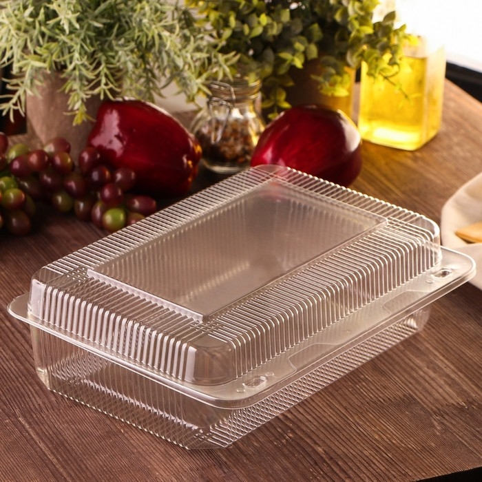 Контейнер пластиковый одноразовый с неразъёмной крышкой УТ11/1, 28×20,5×8,2 см, внутренний 25,6×15,6×7,5 см, цвет прозрачный
