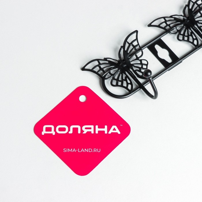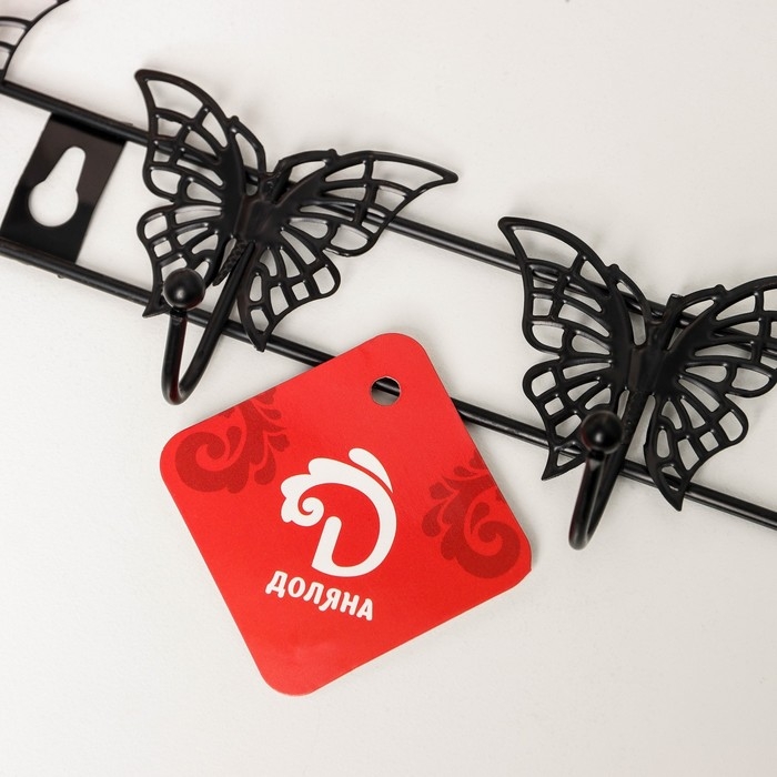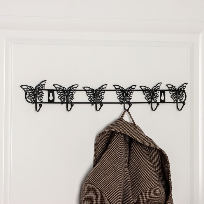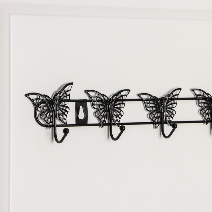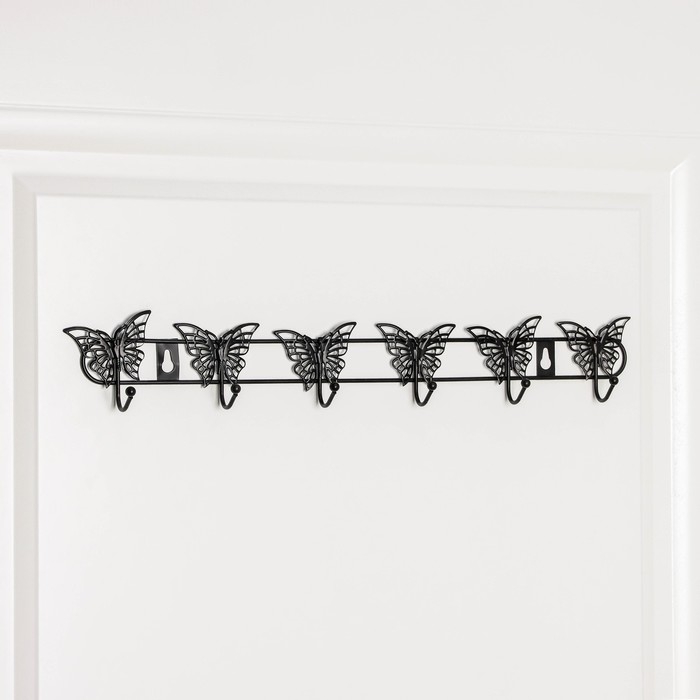 Вешалка настенная Доляна «Бабочки», 6 крючков, 41,5×7,5×3,5 см, цвет чёрный
