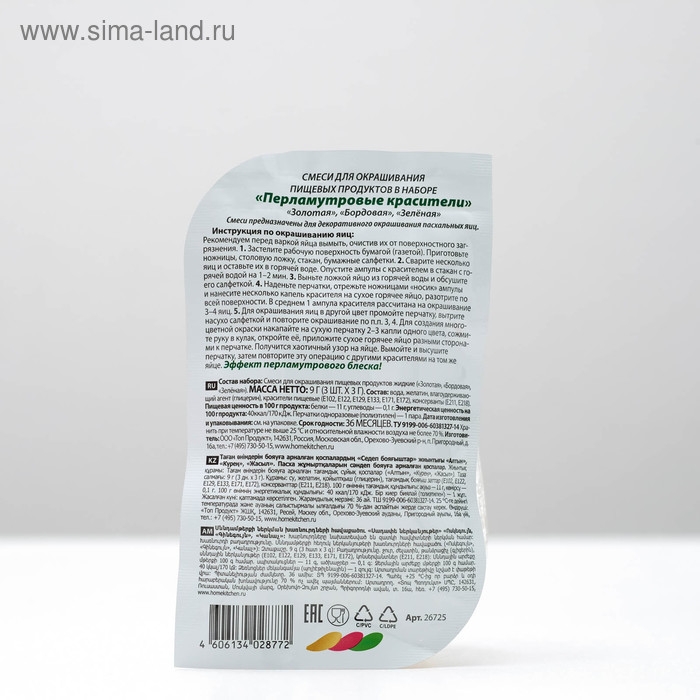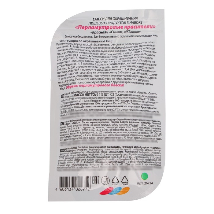 Красители пищевые перламутровые, 3 цвета, микс, 2 вида