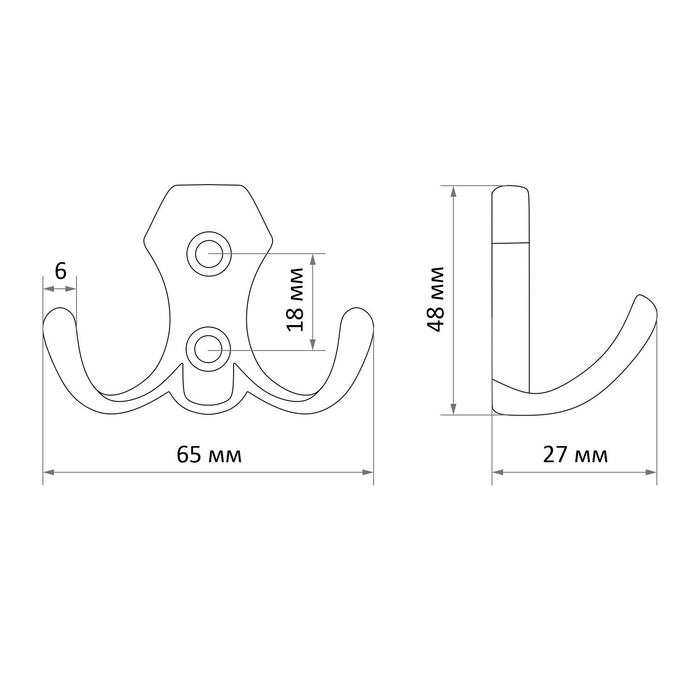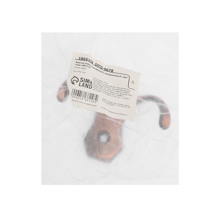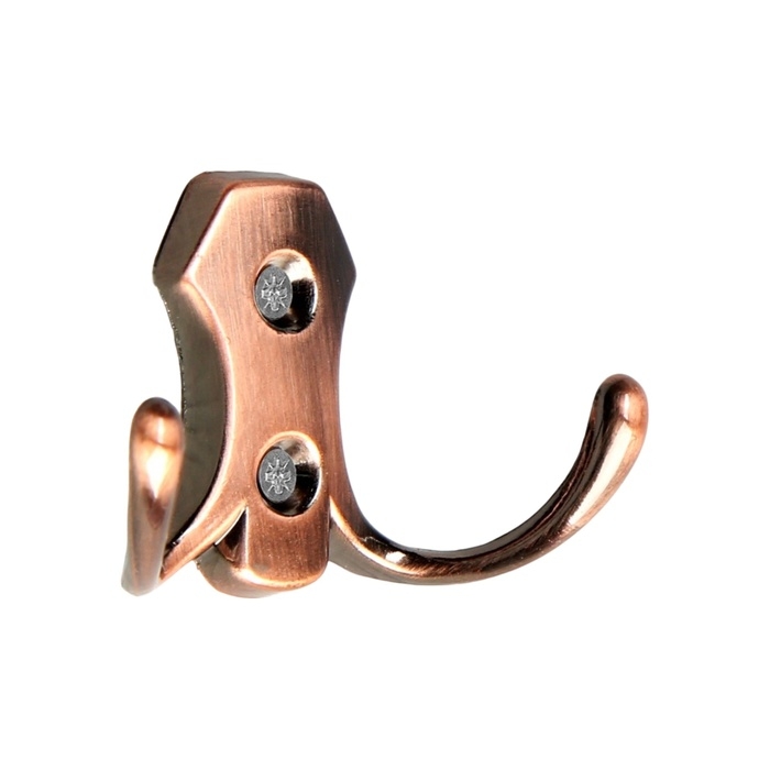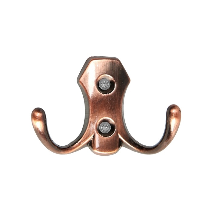 Крючок мебельный ТУНДРА TKD017, двухрожковый, медь
