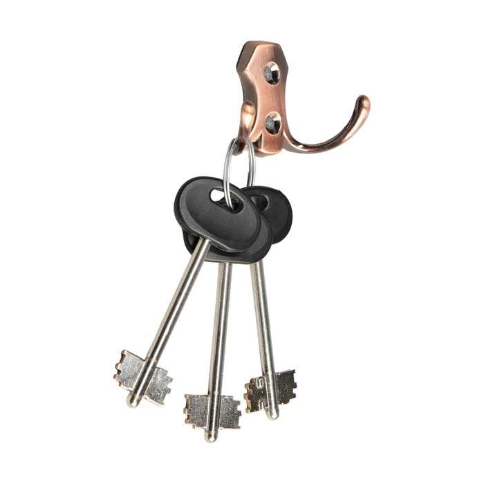 Крючок мебельный ТУНДРА TKD007, двухрожковый, медь