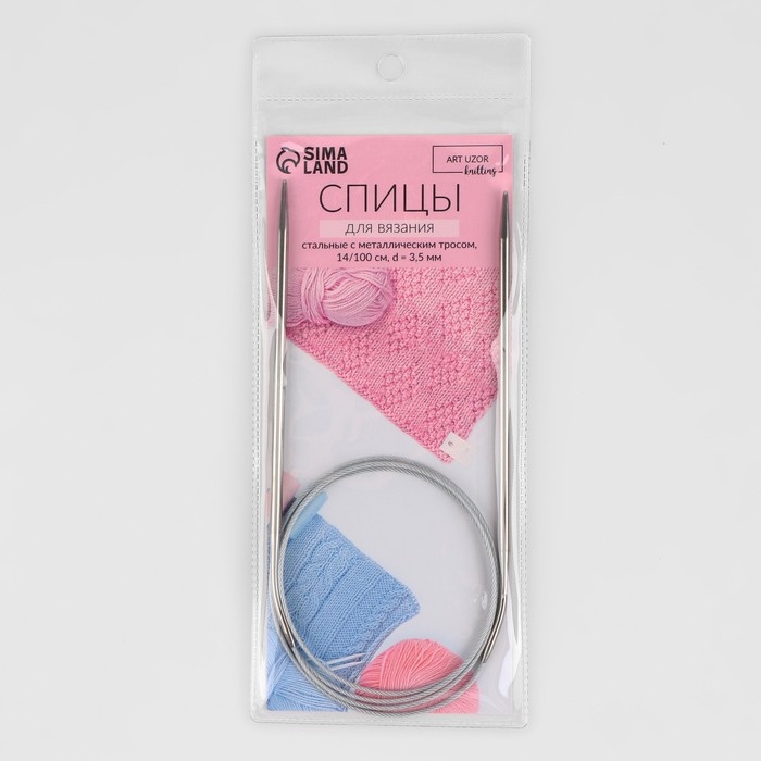 Спицы круговые, для вязания, с металлическим тросом, d = 3,5 мм, 14/100 см