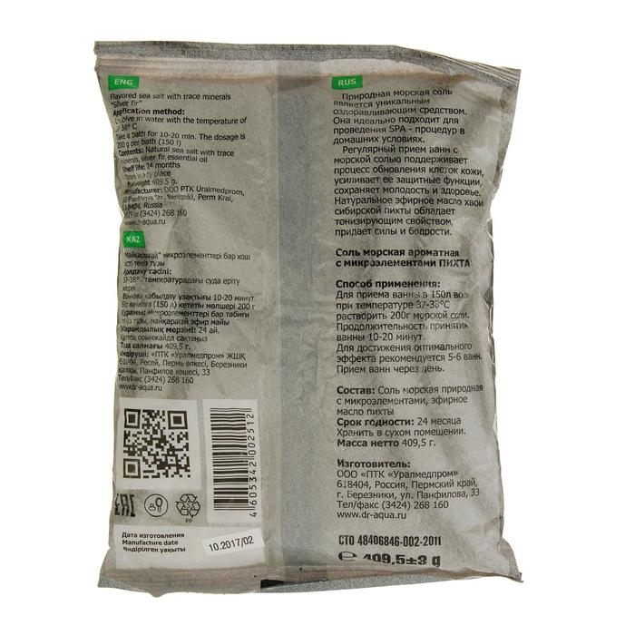 Состав: соль морская природная с микроэлементами, эфирное масло пихты.