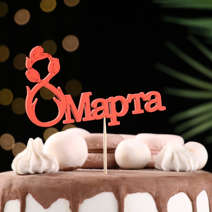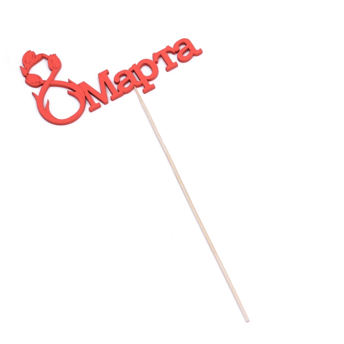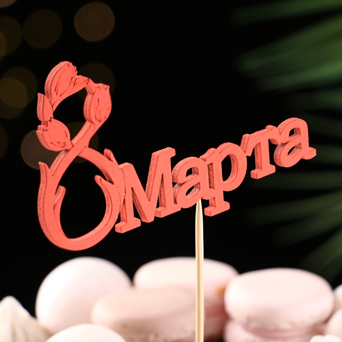 Топпер "8 марта" с тюльпанами, красный, 12х7см Дарим Красиво