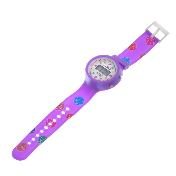 Часы наручные электронные, детские "Горошина", ремешок силикон, l-22 см, фиолетовые