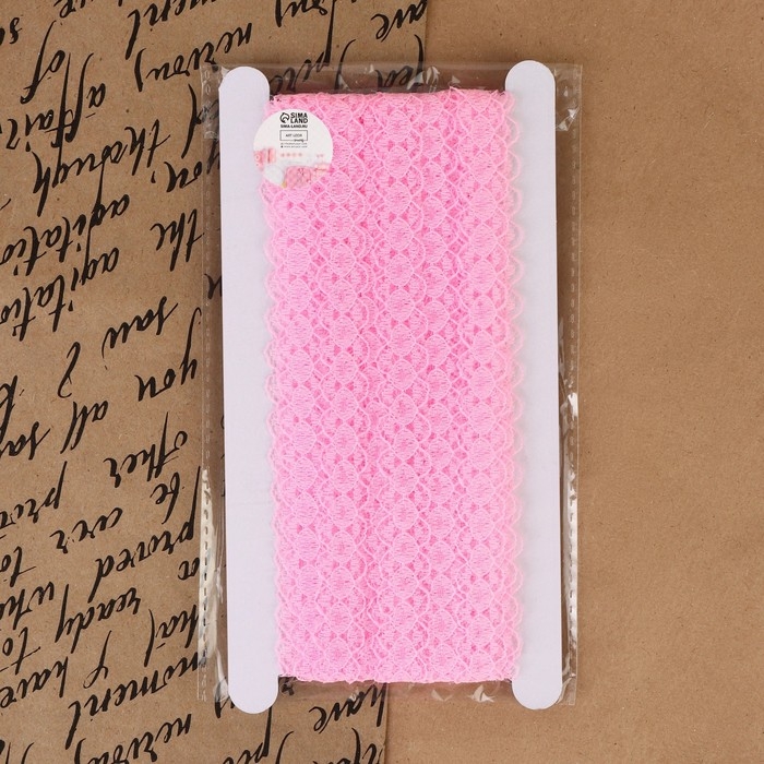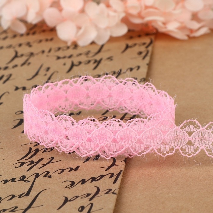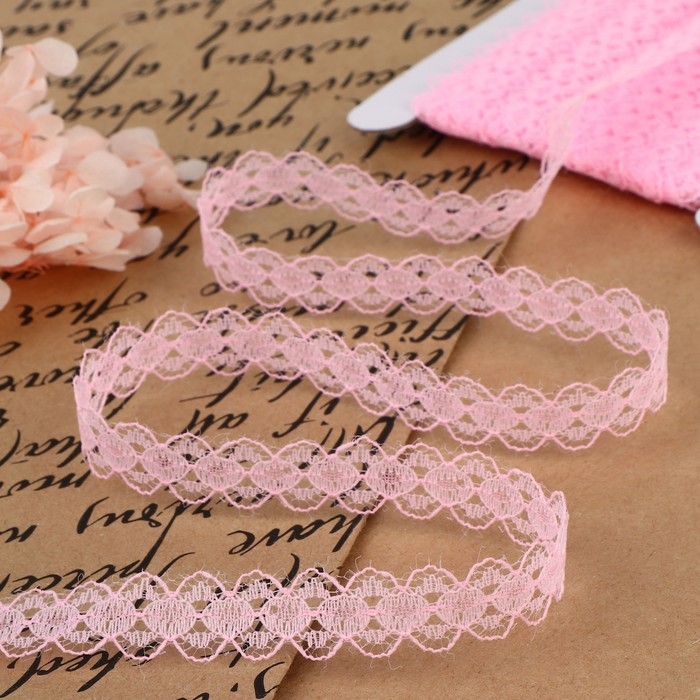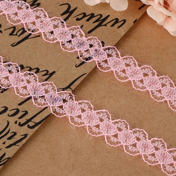 Кружево капроновое, 15 мм × 10 ± 1 м, цвет розовый