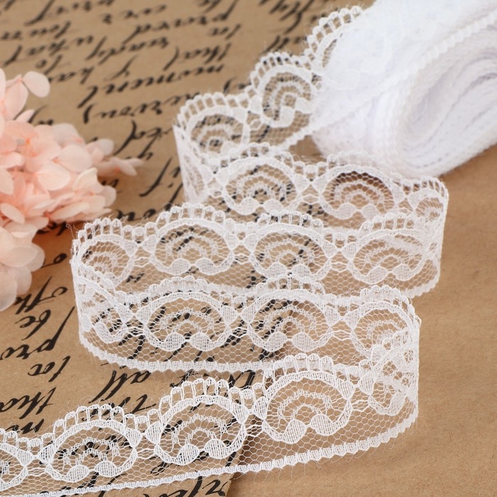 Кружево капроновое, 23 мм × 10 ± 1 м, цвет белый