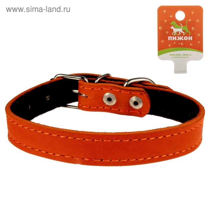Ошейник кожаный на синтепоне, 45 х 2 см, ОШ 25-35 см, оранжевый